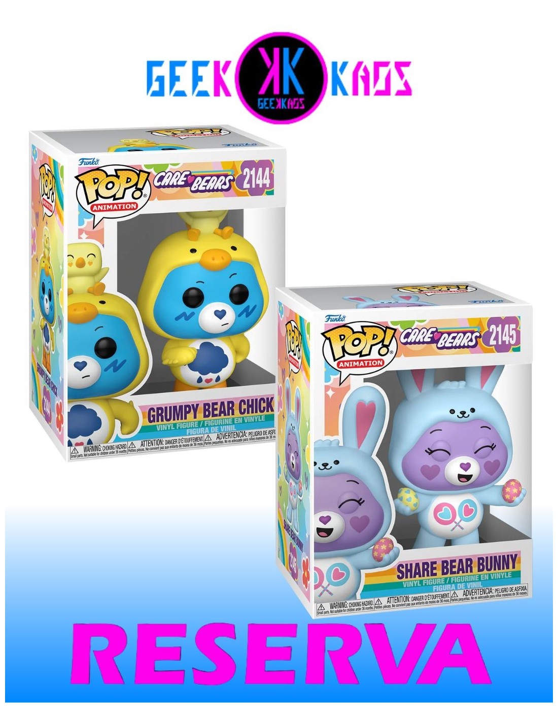 FUNKO POP! 2-Pack - Care Bears - Grumpy Bear Chick 2144, Share Bear Bunny 2145