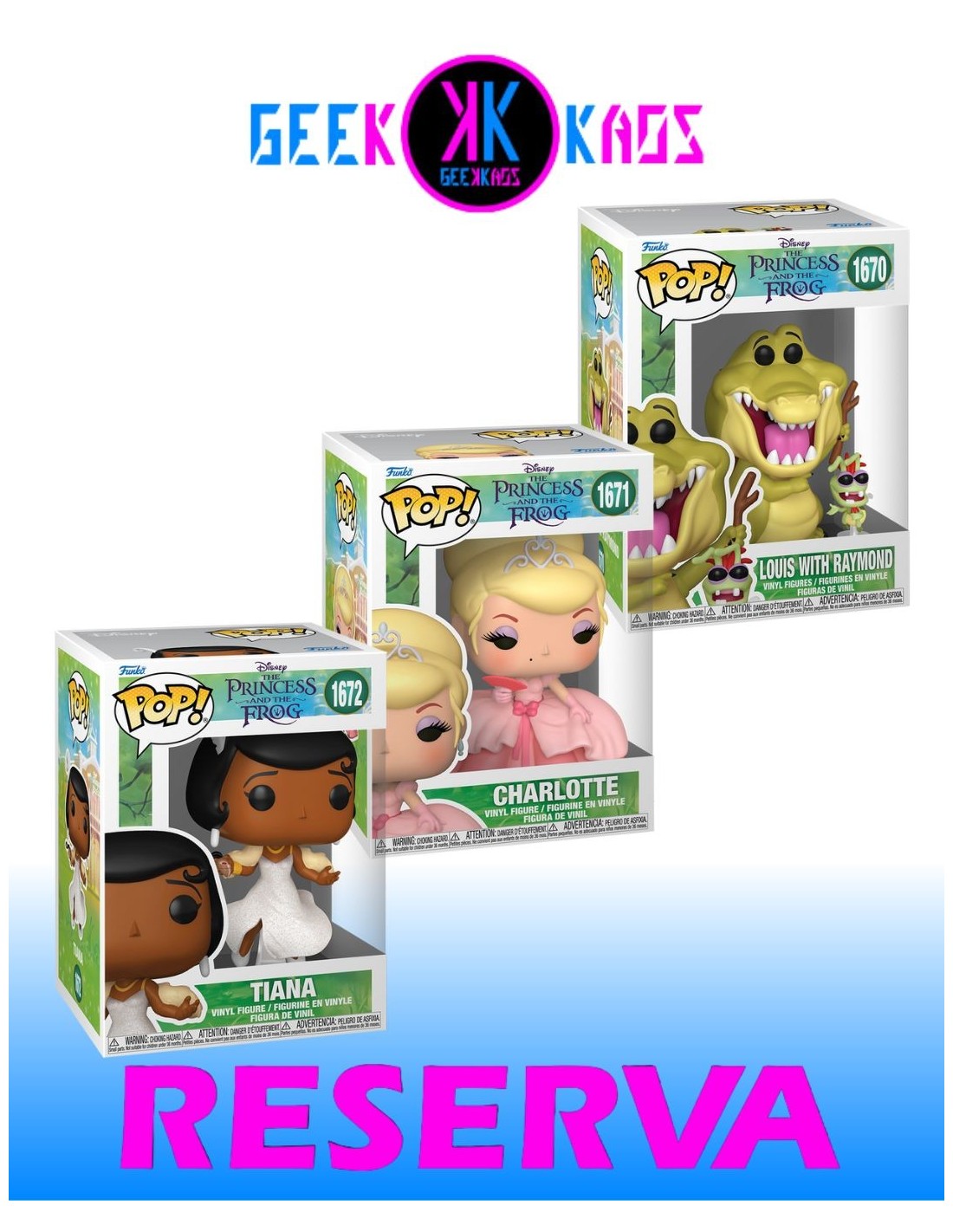 3-PACK - FUNKO POP! THE PRINCESS AND THE FROG - LOUIS WITH RAYMOND 1670, CHARLOTTE 1671, TIANA 1672