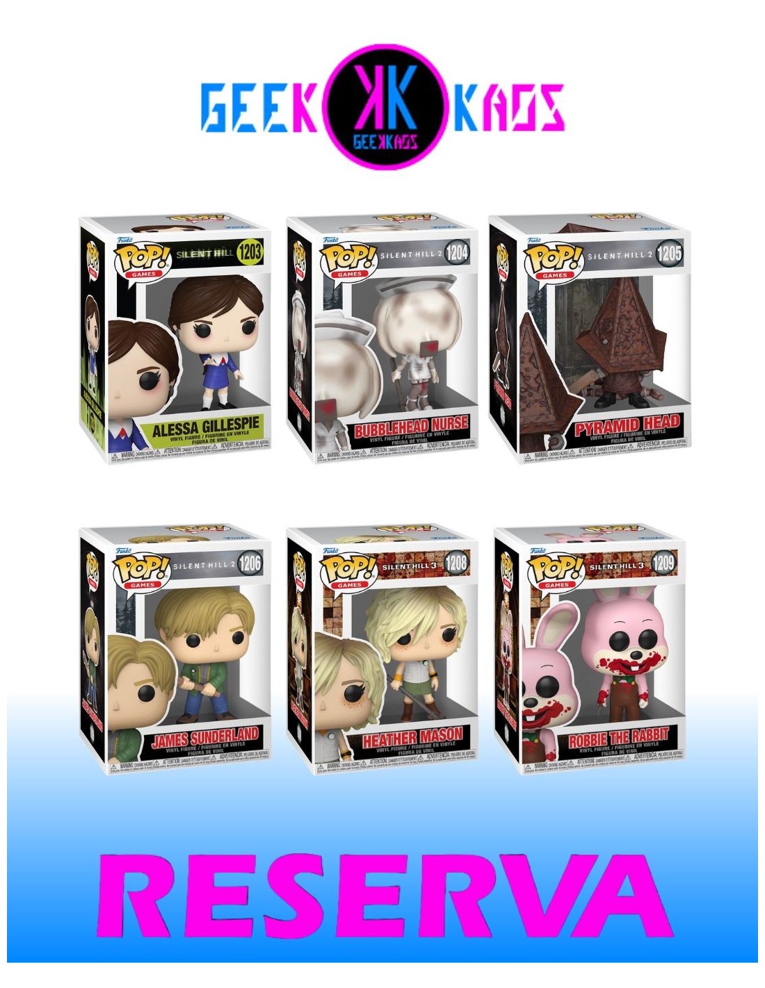6-PACK - FUNKO POP! - SILENT HILL - ALESSA 1203, NURSE 1204, PYRAMID 1205, JAMES 1206, HEATHER 1208, ROBBIE 1209