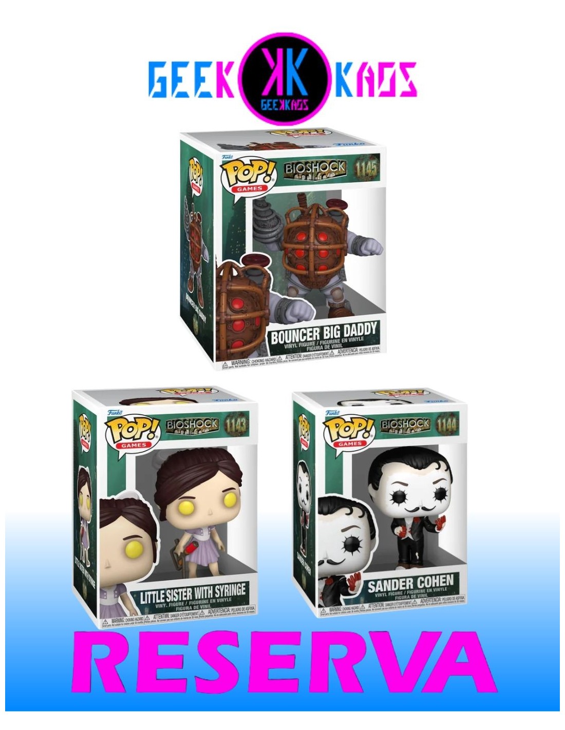 FUNKO POP! 3-PACK - BIOSHOCK - LITTLE SISTER WITH SYRINGE 1143, SANDER COHEN 1144, BOUNCER BIG DADDY 1145