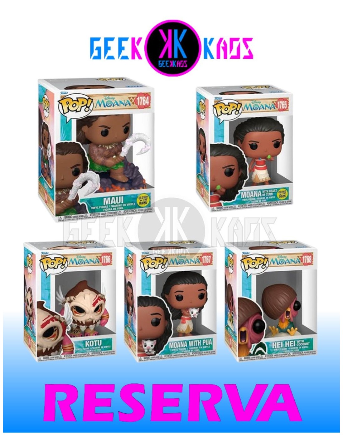 FUNKO POP! 5-PACK - MOANA - MAUI 1764 (GITD), MOANA WITH HEART OF TEFITI 1765, KOTU 1766, MOANA WITH PUA 1767, HEI HEI WITH COCONUT 1768