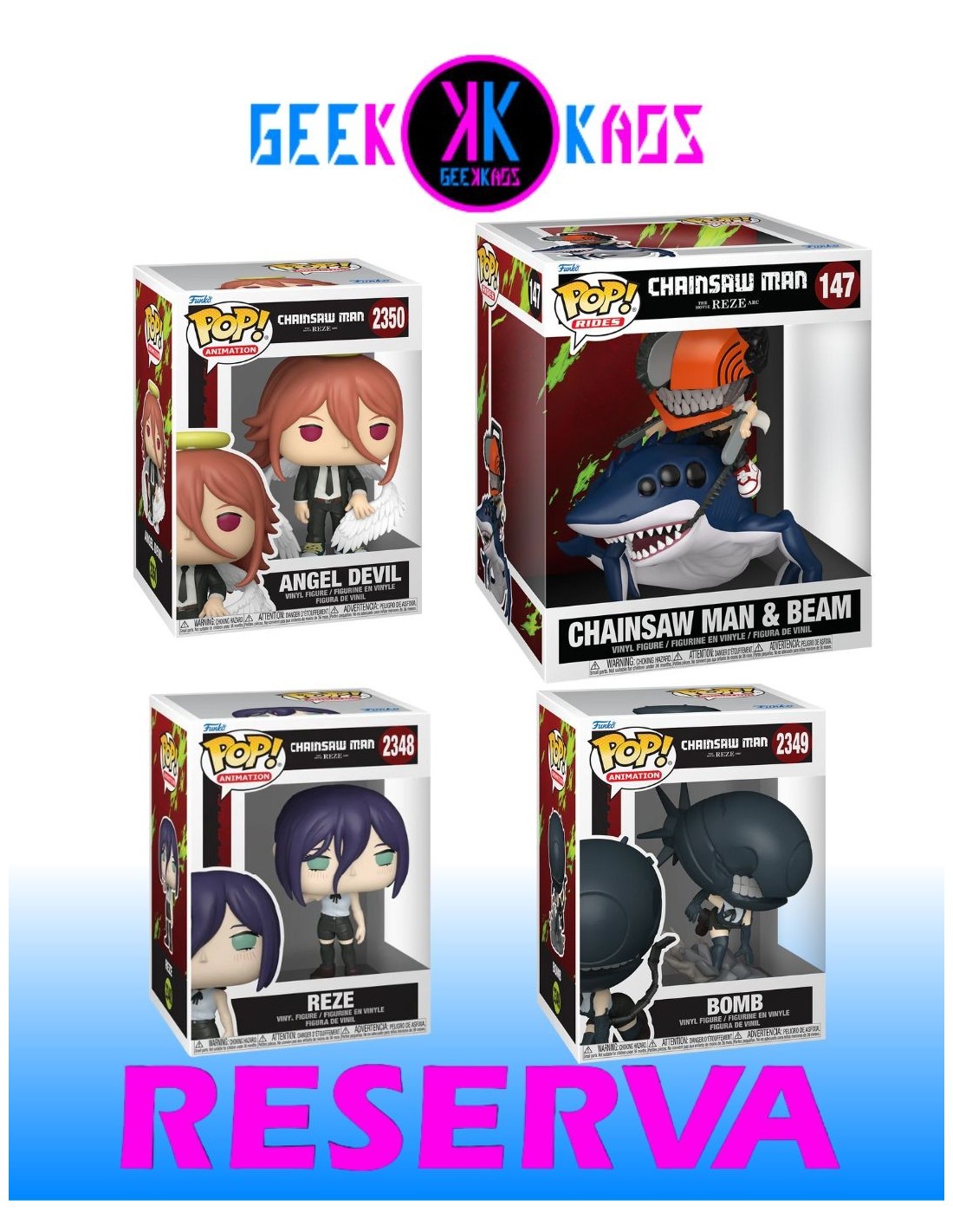 4-PACK - FUNKO POP! - CHAINSAW MAN: REZE ARC - CHAINSAR MAN & BEAM 147, REZE 2348, BOMB 2349, ANGEL DEVIL 2350