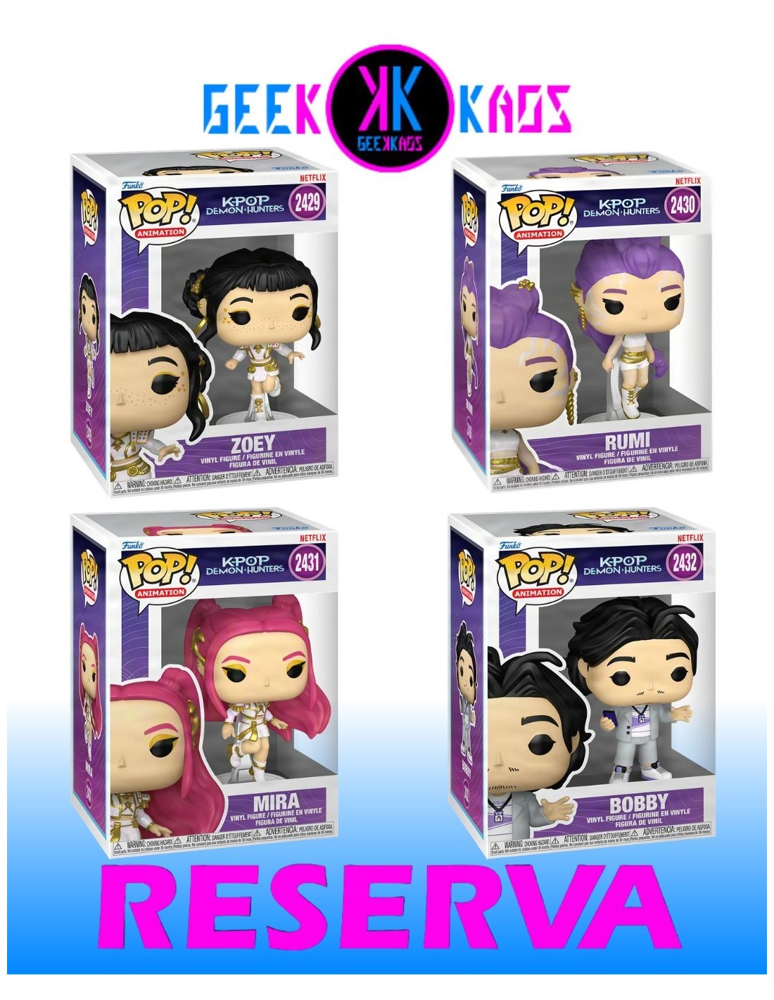 FUNKO POP! 4-PACK - K-POP DEMON HUNTERS - ZOEY 2429, RUMI 2430, MIRA 2431, BOBBY 2432