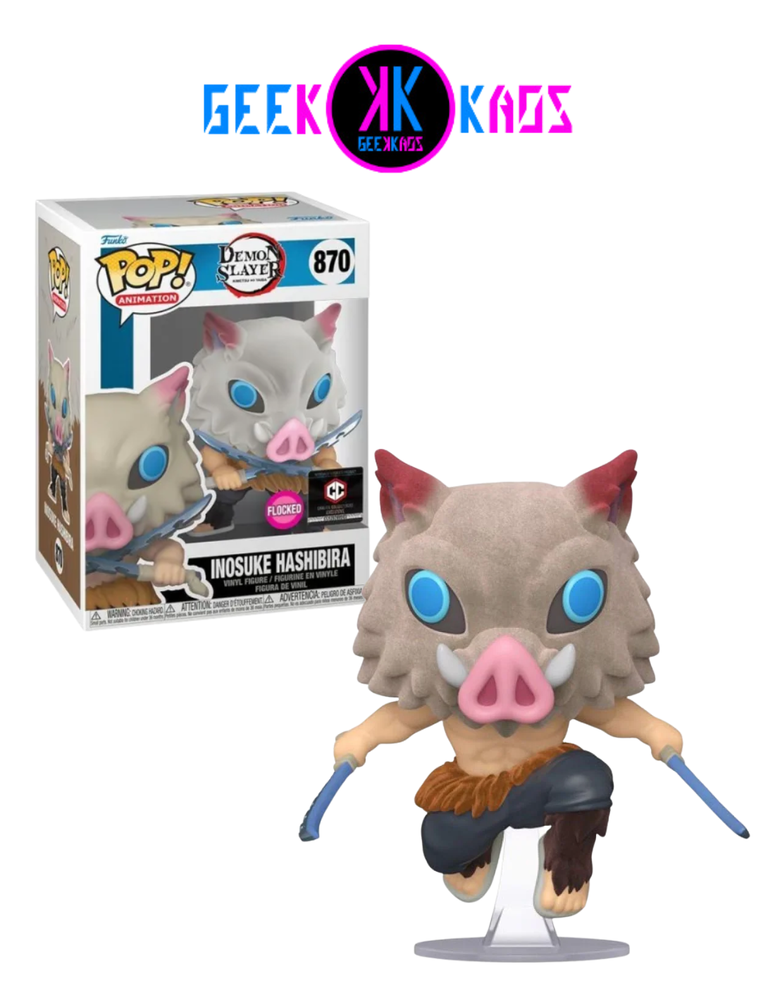 Funko POP! - Demon Slayer - Inosuke Hashibira 870 ( CHALICE STICKER) (FLOCKED)